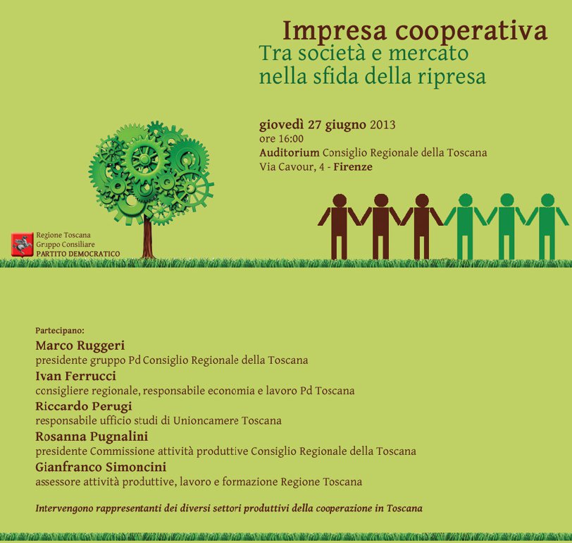 “Impresa cooperativa. Tra società e mercato nella sfida della ripresa. ” Giovedì 27 giugno ore 16 incontro all’Auditorium del Consiglio regionale – via Cavour, 4 – Firenze