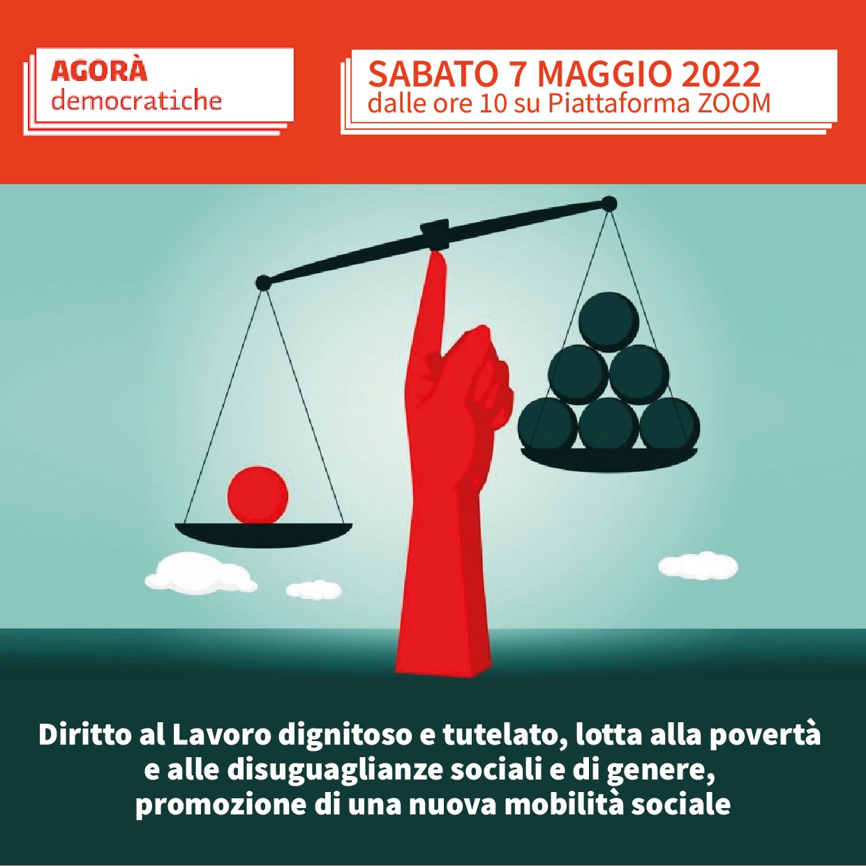 Agorà democratica “Diritto al Lavoro dignitoso e tutelato, lotta alla povertà e alle disuguaglianze sociali e di genere, promozione di una nuova mobilità sociale”