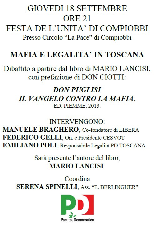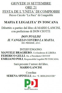 Dibattito a partire dal libro di MARIO LANCISI, con prefazione di DON CIOTTI: DON PUGLISI, IL VANGELO CONTRO LA MAFIA (ED. PIEMME, 2013)