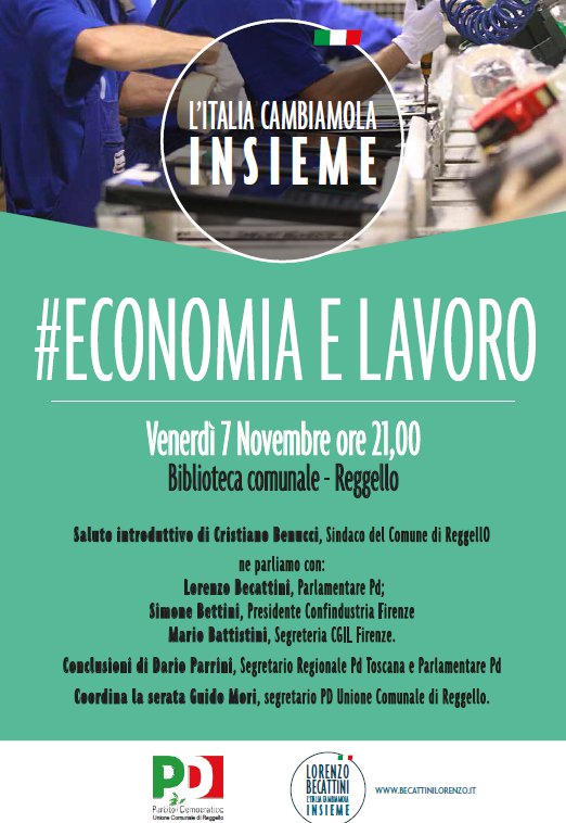 “ECONOMIA E LAVORO”, se ne parla venerdì 7 novembre alle 21, alla Biblioteca comunale di Reggello.