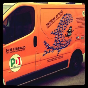 5374 chilometri in 20 tappe in lungo e largo per la Toscana con un furgone arancione un po’ ‘riot’, sulle fiancate lo slogan “Voglio di più, insieme si può” e un disegno con dei pesci piccoli che mangiano un pesce grande. Questi i numeri e i colori della campagna elettorale on the road dei Giovani Democratici toscani in vista del voto di domenica e lunedì, partita un mese fa e conclusasi ieri a Castelfiorentino.