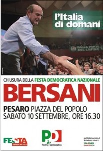 Il Segretario nazionale Pier Luigi Bersani chiuderà la Festa del Pd di Pesaro, sabato 10 settembre alle 16:30 a Piazza del Popolo.