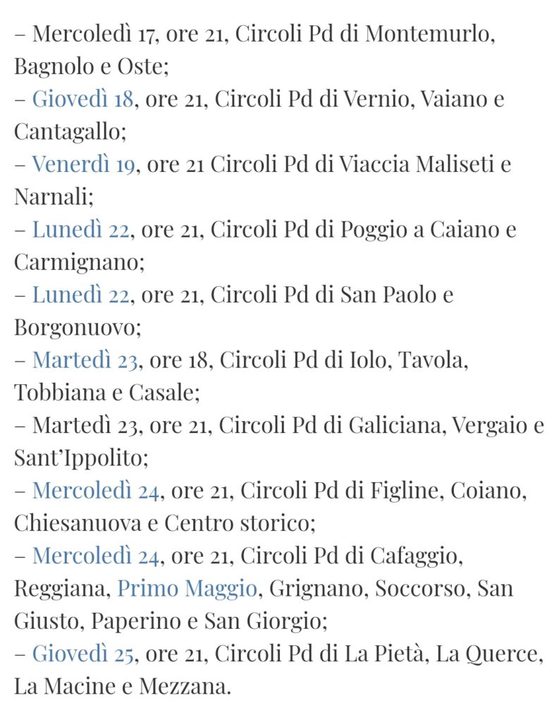 | Scandicci | circ. quartiere | 18/3 | “ | |