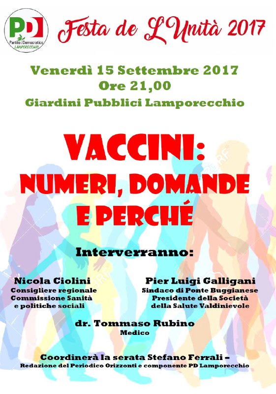 Alla Festa de L’Unità di Lamporecchio stasera si parlerà di “Vaccini: numeri, domande e perchè”.