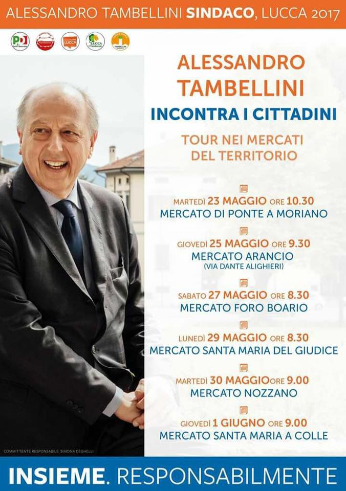 Amministrative 2017, Lucca: Alessandro Tambellini incontra i cittadini nei mercati della città