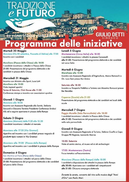 Amministrative 2017 Manciano, il calendario delle iniziative