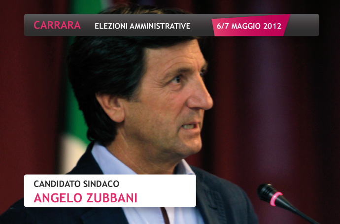 Angelo Zubbani, attuale sindaco di Carrara, si presenta alle prossime elezioni amministrative del 6 e 7 maggio, per rinnovare il proprio mandato; contro di lui altri 8 candidati. Zubbani ha alle spalle diversi incarichi politici e amministrativi; tra gli altri, è stato già consigliere comunale e vicesindaco di Carrara dal 1990 al 1993, assessore con delega all’assetto del territorio nel 2002 e Consigliere ATO Acque Toscana Nord dal 2000 al 2004.