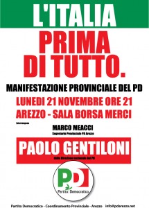 “Siamo di fronte a un grande momento di svolta, una grande occasione di rinascita collettiva. Per questo chiamiamo tutti a raccolta lunedì sera”, dichiara Marco Meacci. “Finalmente le battaglie che tutti insieme abbiamo portato avanti in questi mesi hanno avuto il loro frutto, con il governo Berlusconi che appartiene ormai al passato. Giusto compiacersi per questo, ma non dobbiamo perdere tempo: adesso è il momento di avviare la ricostruzione e per questo serve un PD presente a tutti i livelli che si ponga come la più credibile forza per il rilancio del paese. Ricostruire per noi significa andare incontro alle comunità locali, ascoltare e fare tesoro delle tante testimonianze e proposte, con il dialogo e l’azione politica. La presenza di un esponente nazionale di rilievo come Paolo Gentiloni, come pure questo primo esperimento per coinvolgere in modo nuovo il tessuto sociale ci aiuterà ad avviare un percorso di confronto che punta all’innovazione, da riproporre in modo sempre migliore nel futuro. Per questo invito tutti i cittadini, le forze sociali, le categoriche economiche ad unirsi a noi, partecipando alla manifestazione di lunedì”