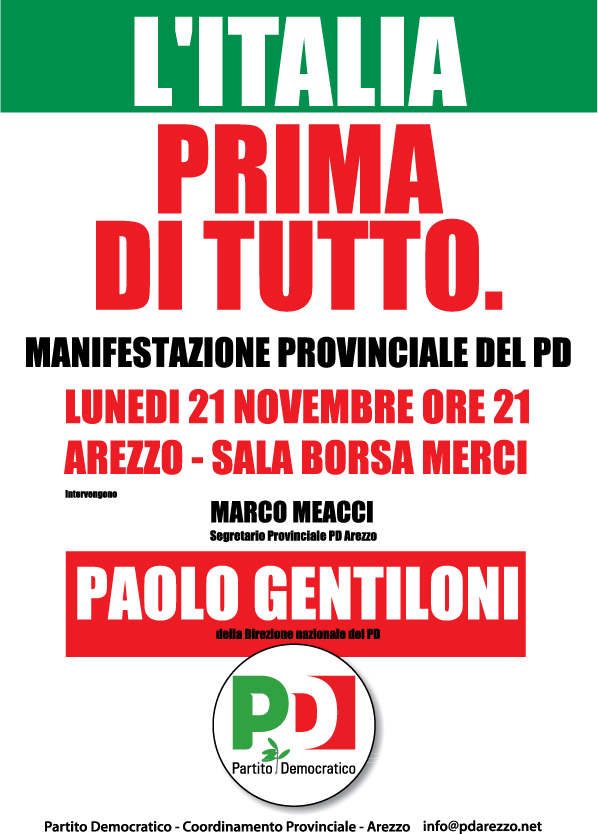 Il primo atto di questo nuovo corso, sulla scia di una grande voglia di rinnovamento propria del paese, è ad Arezzo, con la manifestazione provinciale indetta per lunedì 21 novembre dal Coordinamento provinciale. Un incontro che nasce con spirito aperto e importanti novità.