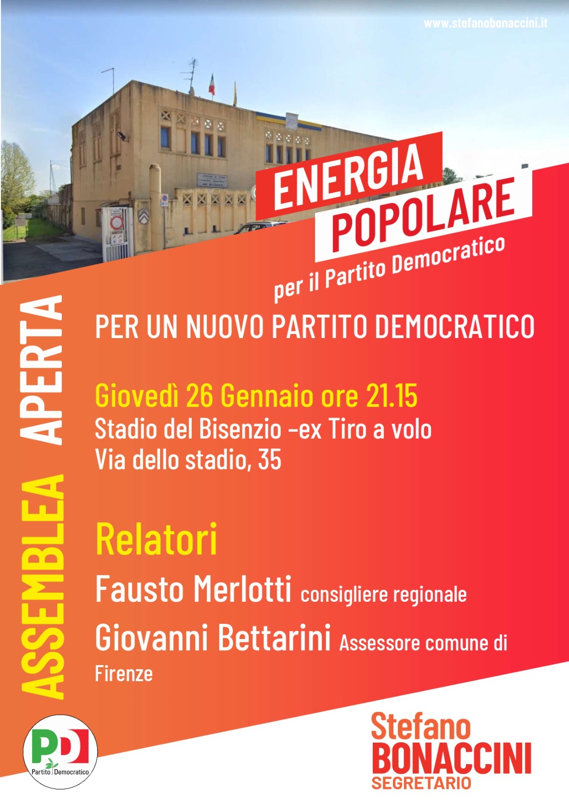 Assemblea aperta a sostegno di Stefano Bonaccini giovedì 26 Gennaio, alle ore 21.15, a Signa, presso lo Stadio del Bisenzio – ex Tiro a volo, via dello stadio 35.