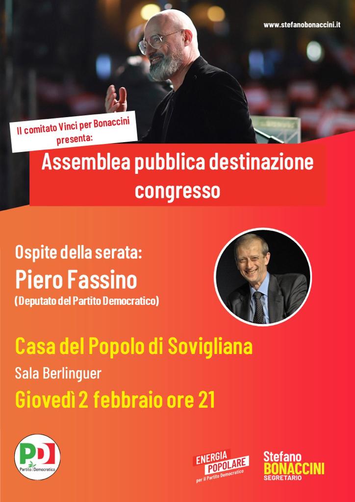 Il Comitato Vinci per Stefano Bonaccini organizza un’assemblea pubblica nella quale parteciperà anche Piero Fassino. Appuntamento giovedì 2 febbraio alle 21 presso la Casa del popolo di Sovigliana, nella sala Berlinguer.