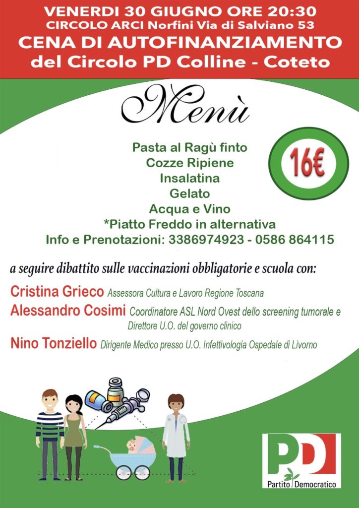 Cena con dibattito sulle vaccinazioni al Circolo Pd Colline-Coteto