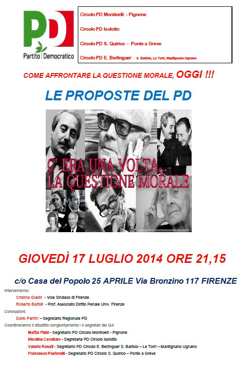 COME AFFRONTARE LA QUESTIONE MORALE, OGGI !!!