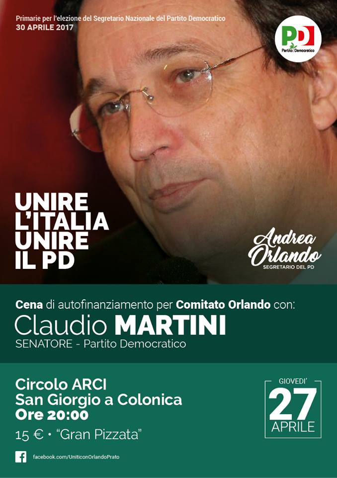 Congresso PD: Cena per comitato Orlando con Claudio Martini