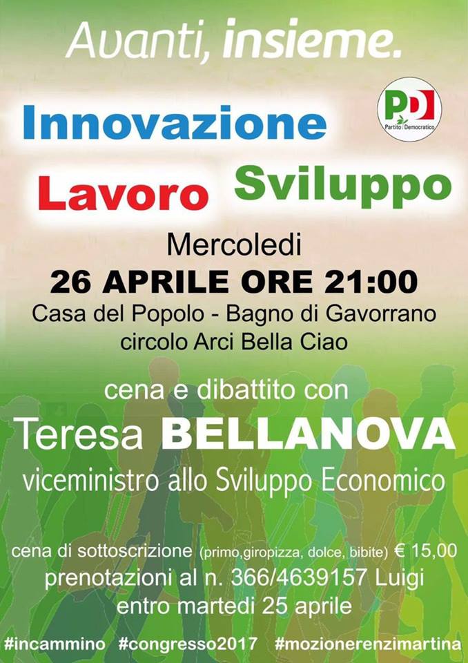 Congresso PD. Mozione Renzi, a cena con Teresa Bellanova