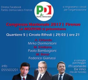 Congresso PD: Presentazione delle mozioni congressuali nel Quartiere 5