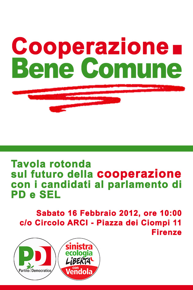 “Cooperazione, Bene comune”, ne parlano Pd e Sel a Firenze