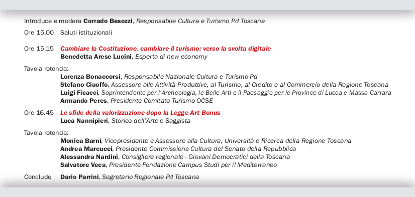 Introduce e modera Corrado Besozzi, Responsabile Cultura e Turismo Pd Toscana