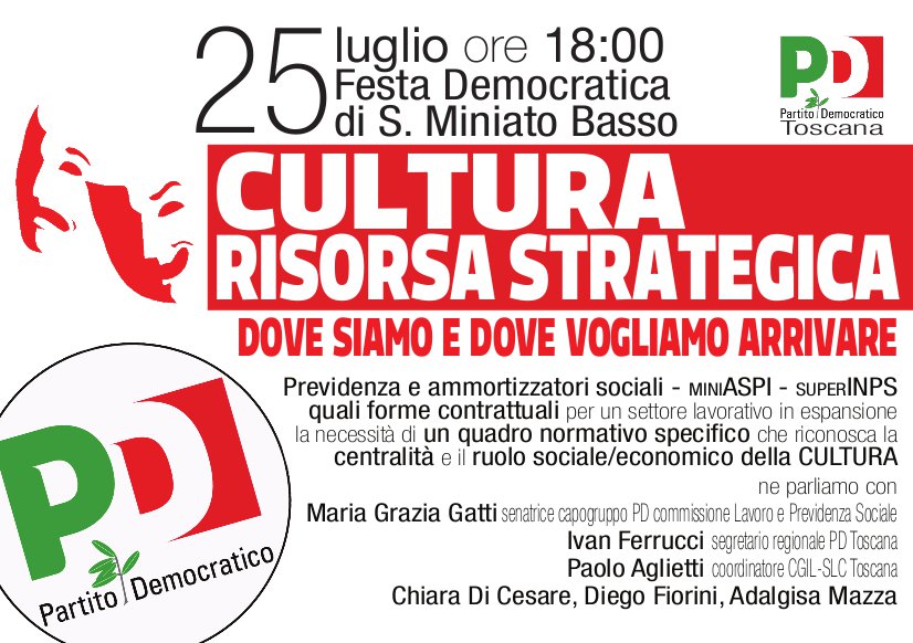 “Cultura risorsa strategica. Dove siamo e dove vogliamo arrivare”. Il 25 luglio incontro alla Festa Democratica di San Miniato Basso