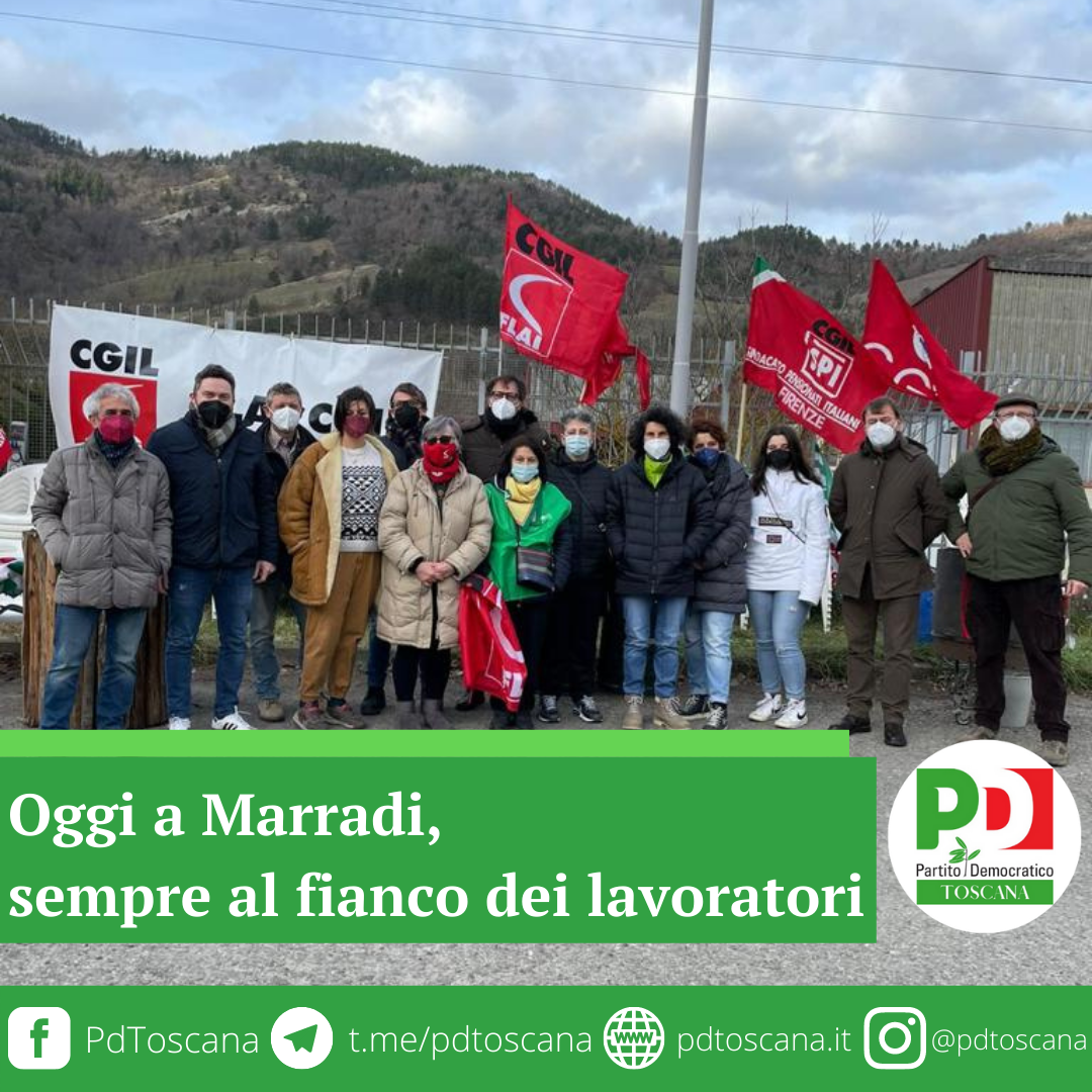 Il Pd della Toscana oggi ha portato anche di persona la sua solidarietá ai lavoratori della fabbrica dei marroni di Marradi, in presidio permanente dopo l’annuncio della proprietà Italcanditi di chiudere lo stabilimento locale. Presenti per la segreteria regionale dem il vicesegretario Massimiliano Pescini e Marco Recati, responsabile agricoltura, insieme al sindaco di Scarperia e San Piero Federico Ignesti, al segretario del Pd locale Tommaso Previdi e all’assessore Fabio Billi.