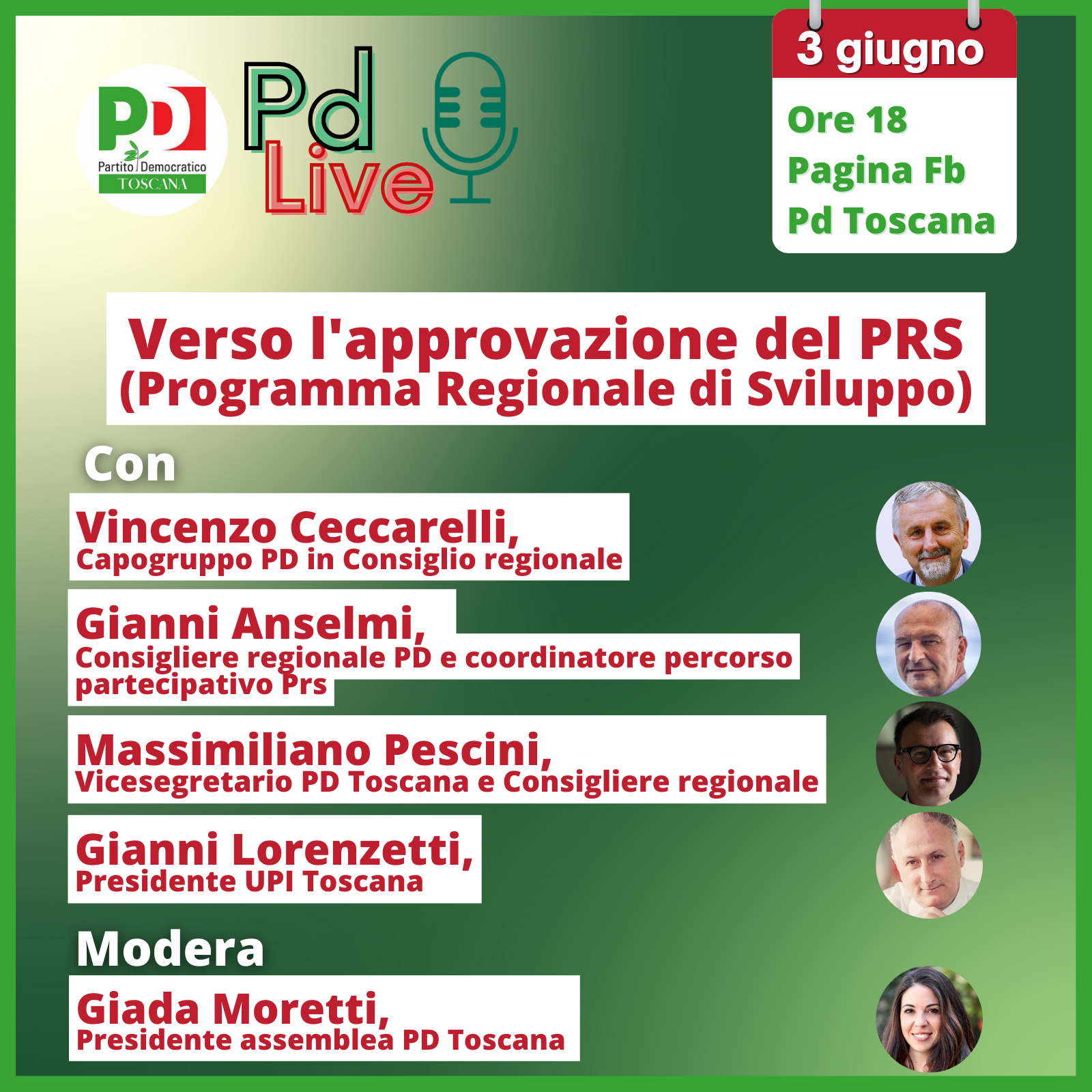 Dodicesima puntata del PdLive venerdì 3 giugno alle 18 sulla pagina Facebook “PD Toscana”.