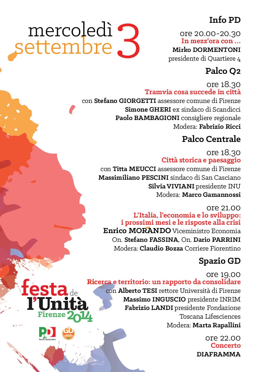 Il segretario Dario Parrini alla Festa dell’Unità di Firenze con il vice ministro Enrico Morando e Stefano Fassina. Modera Claudio Bozza