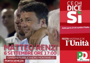 Domenica 6 settembre, Matteo Renzi chiuderà la Festa nazionale de l’Unità a Milano.