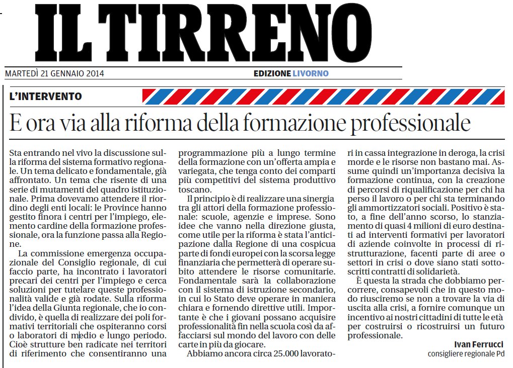 intervento-ferrucci-tirreno-21-gennaio-2014Intervento del segretario regionale del Pd della Toscana Ivan Ferrucci su Il Tirreno del 21 gennaio 2014