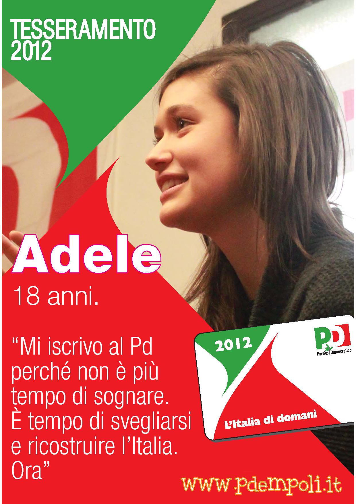 Il Partito democratico Empolese Valdelsa per sostenere il tesseramento ha scelto Adele, 18 anni; Alberto, 38 anni; Giuseppe, 34 anni, e Virgilio, che di anni ne ha 68. Tutti hanno espresso in una breve frase perché sono iscritti al Pd.
