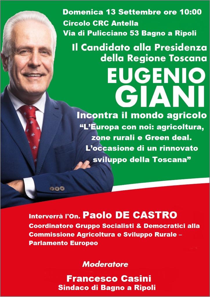 Il candidato alla Presidenza della Regione Toscana Eugenio Giani incontra il mondo agricolo. “L’Europa con noi: agricoltura, zone rurali e Green Deal. L’occasione di un rinnovato sviluppo della Toscana”.
