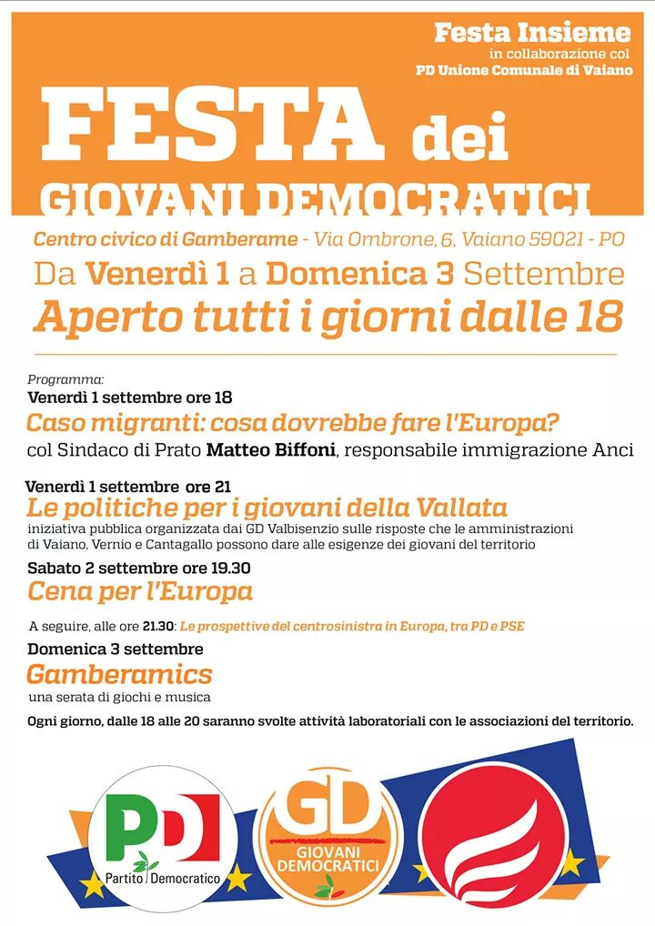 Festa dei giovani democratici a Prato