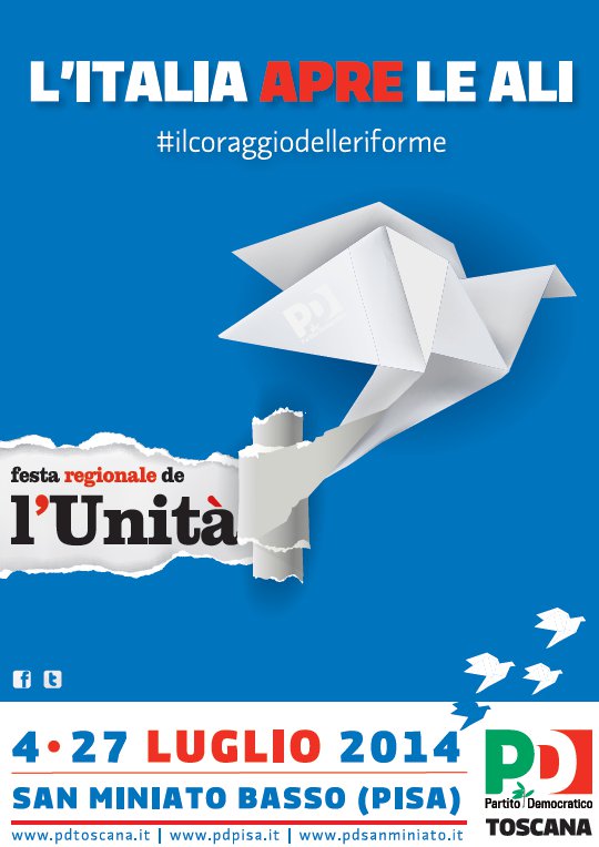 VOLANTINO-festa201418 luglio 2014 – Prosegue la Festa regionale dell’Unità organizzata quest’anno a San Miniato Basso (PI), in corso fino al 27 luglio nei giardini della Casa Culturale di via Pizzigoni. Domani Sabato 19 alle ore 21.30 incontro dal titolo “Enrico Berlinguer, dialogo a trent’anni dalla sua scomparsa: un’eredità politica attuale”. Interverranno Gianni Cuperlo e Pierluigi Castagnetti, introduce Cristian Pardossi della Segreteria regionale del Pd.