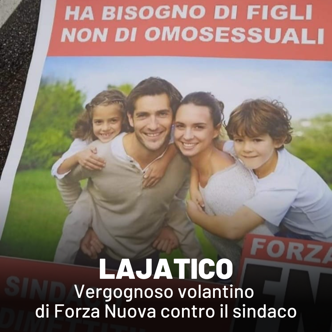 Così Emiliano Fossi, segretario del Pd toscano, dopo il volantino a firma “Forza Nuova” su cui compare la scritta “Lajatico ha bisogno di figli, non di omosessuali”.