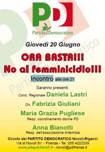 Giovedì 20 Giugno a Firenze incontro “ORA BASTA!!! No al femminicidio!!!”