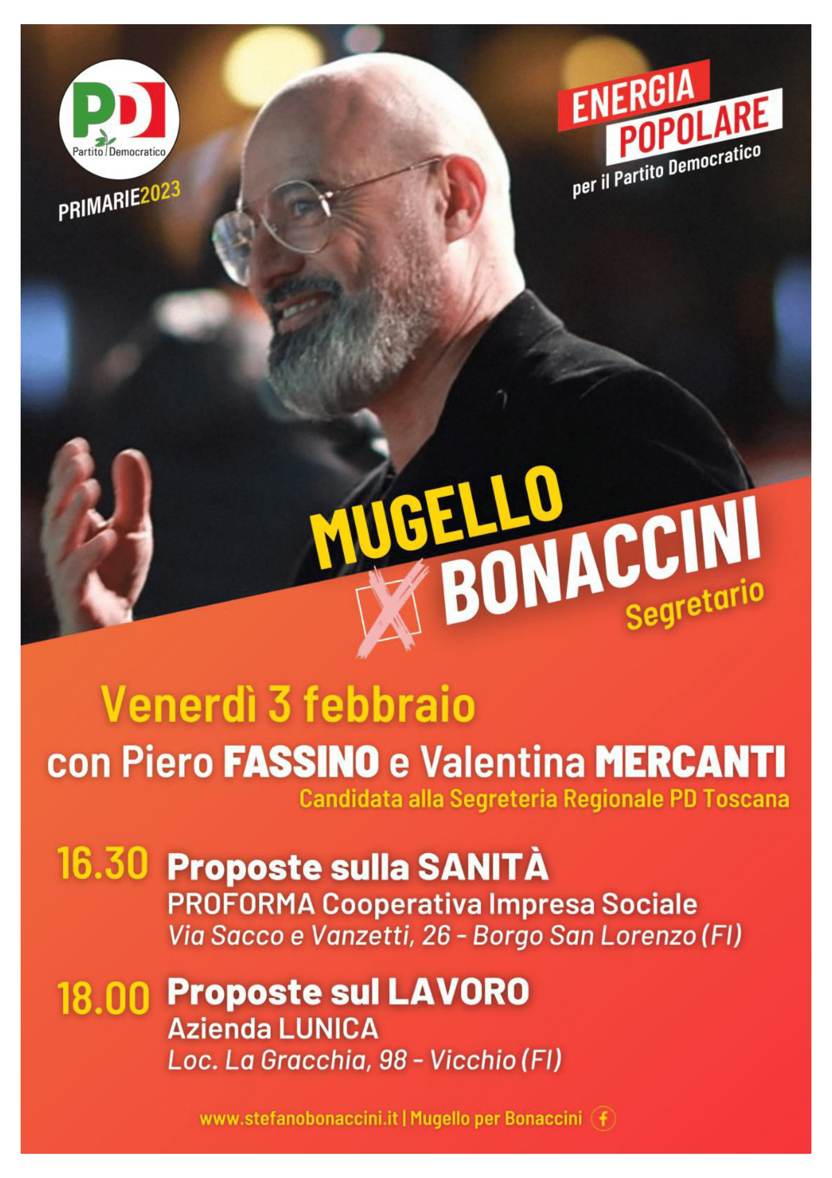 Il comitato metropolitano del Mugello a sostegno della mozione di Stefano Bonaccini, candidato alla segreteria nazionale, organizza due incontri aperti al contributo di tutti e nei quali interverrà anche Piero Fassino, deputato alla Camera PD e Presidente della Commissioni Affari Esteri.