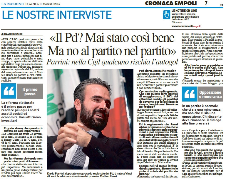 Intervista di DAVID BRUSCHI su La Nazione – Empoli del 10 maggio 2015