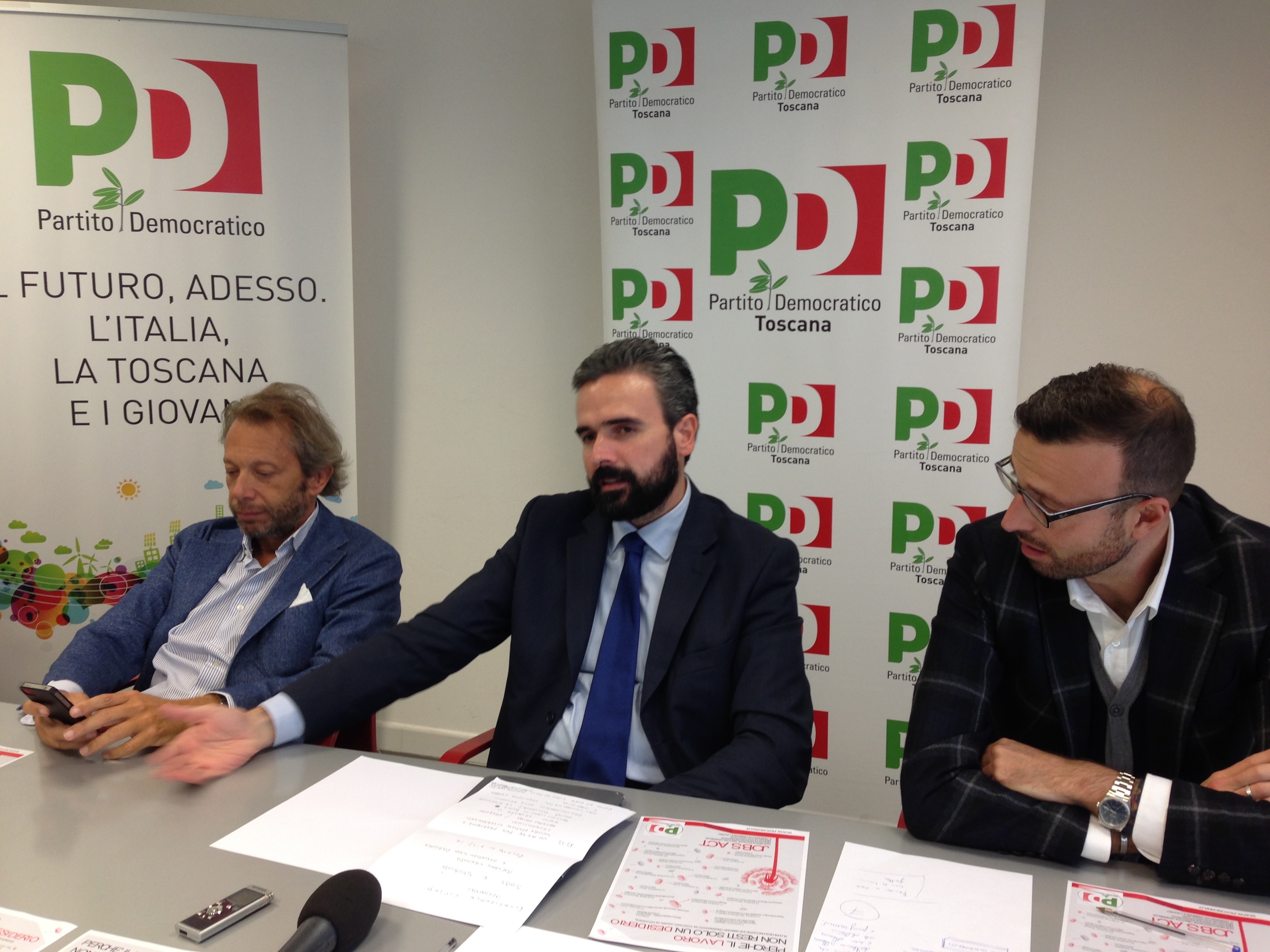10 novembre 2014 – Il segretario regionale del Pd toscano Dario Parrini, con Stefano Bruzzesi e Antonio Mazzeo, spiega in conferenza stampa il percorso del Pd toscano verso le elezioni regionali.