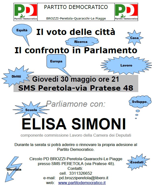 Giovedì 30 maggio ore 21 a Firenze, presso SMS Peretola-via Pratese 48, incontro “Il voto delle città, Il confronto in Parlamento”. Parliamone con: