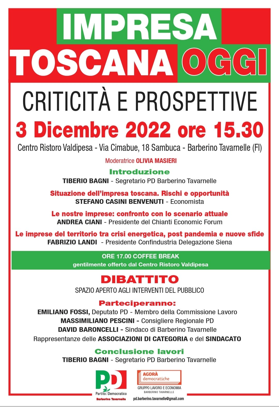 “Impresa Toscana oggi: criticità e prospettive”, l’incontro al Circolo di Barberino Tavarnelle