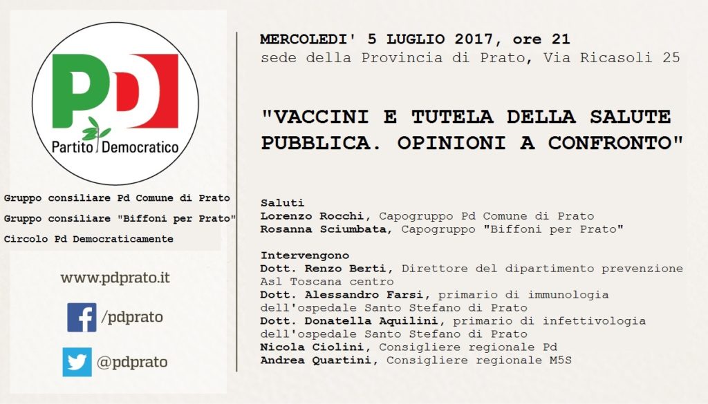 Incontro a Prato: “Vaccini e tutela della salute pubblica. Opinioni a confronto”