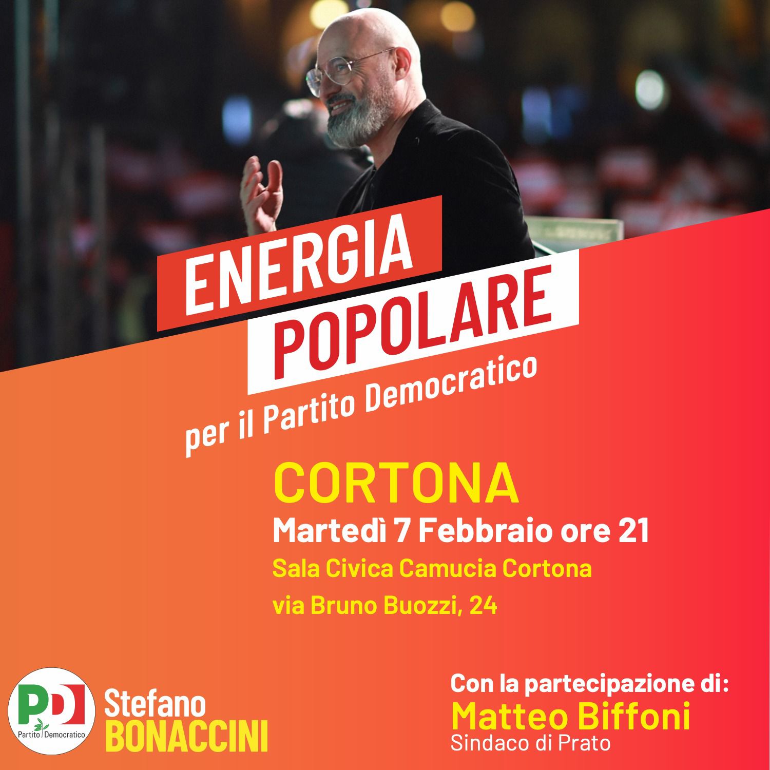Iniziativa del Comitato di Cortona per Stefano Bonaccini martedì 7 febbraio alle 21 presso la Sala civica Camucia Cortona, in via Bruno Buozzi 24. Parteciperà il sindaco di Prato e presidente Anci Toscana Matteo Biffoni.