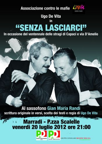 Venerdì 20 luglio, Marradi ospiterà lo spettacolo di Ugo De Vita “Senza lasciarci”, ideato in occasione del ventennale delle stragi di Capaci e Via D’Amelio e organizzato dal PD marradese e dal Gruppo Consiliare PD della Regione Toscana.