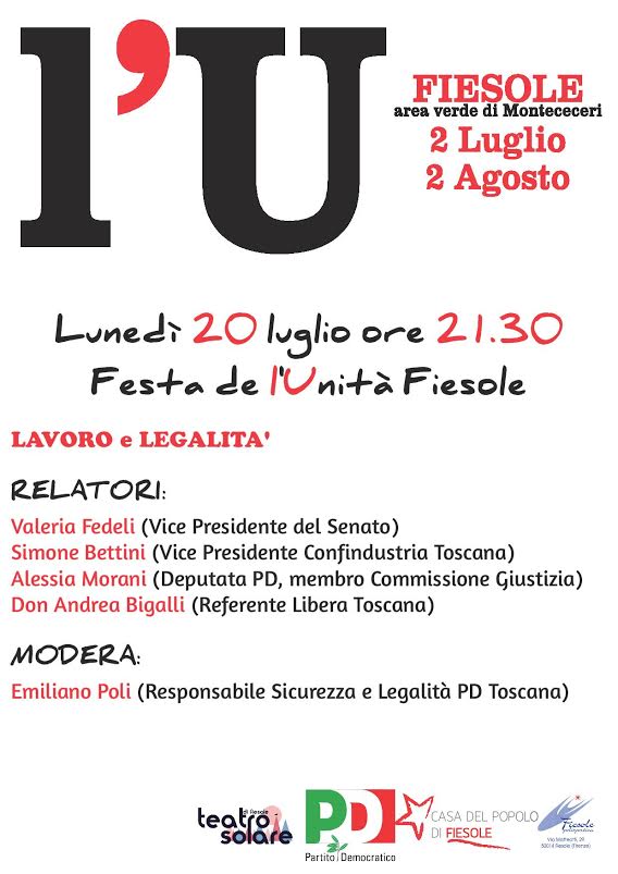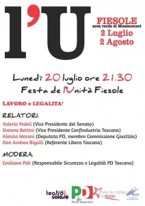 Lavoro e Legalità, se ne parla a Fiesole lunedì 20 luglio