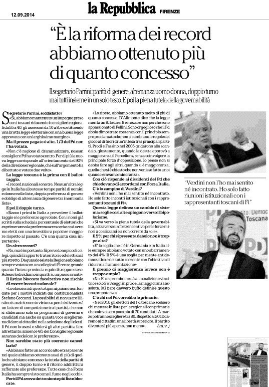Legge elettorale toscana. Intervista di Dario Parrini a Repubblica Firenze