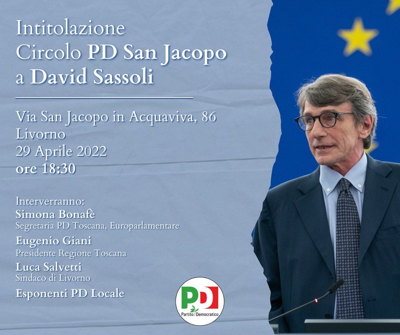 Oggi, venerdì 29 aprile, verrà intitolata la sede del circolo PD San Jacopo a David Sassoli.