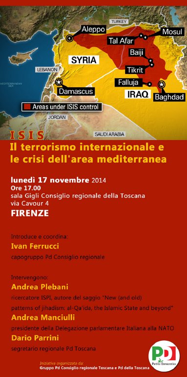 “L’ISIS, il terrorismo internazionale e le crisi dell’area mediterranea”, se parla il 17 novembre 2014, Ore 17.00 a Firenze, sala Gigli del Consiglio regionale della Toscana, via Cavour 4.