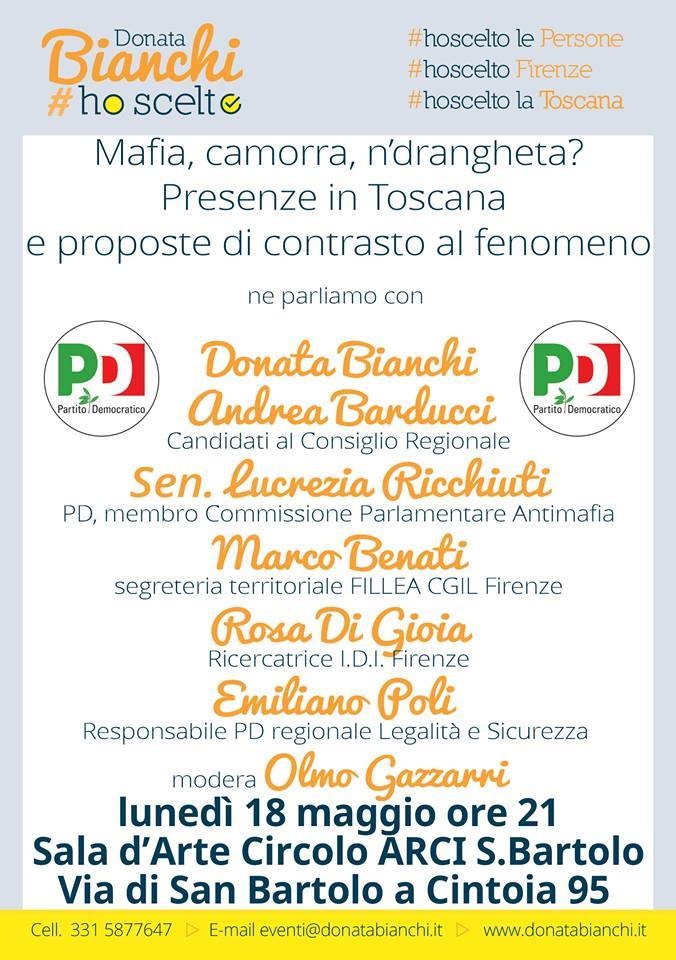 Mafia, camorra, ndrangheta? Presenze in Toscana e proposte di contrasto al fenomeno, se ne parla il 18 maggio al circolo San Bartolo