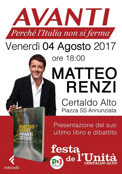 Matteo Renzi presenta il suo libro alla Festa de L’Unità di Certaldo