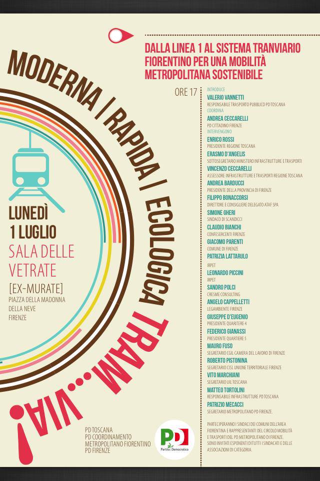 Questo appuntamento è stato pensato allo scopo di contribuire – come Pd – a ridare slancio e forza ad un progetto – quello della tramvia – che possiamo definire fra le più importanti opere infrastrutturali e di trasformazione urbana conosciute a Firenze dai tempi del Piano Poggi.