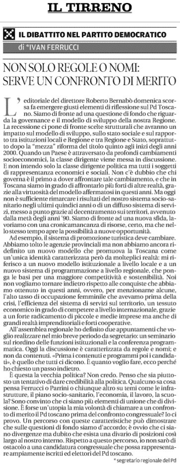 “Non solo regole o nomi: serve un confronto di merito”. Intervento del segretario regionale Ivan Ferrucci su Il Tirreno del 17 luglio 2013